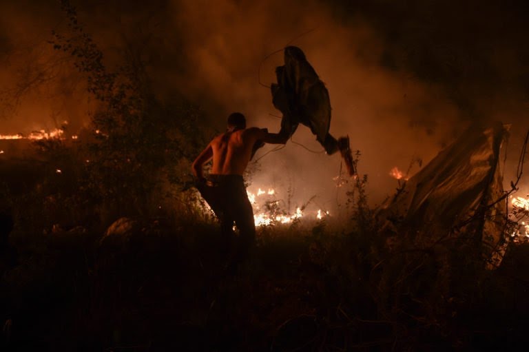 Images broadcast on Spanish TV showed local residents, their mouths and noses covered with handkerchiefs, trying to contain the flames with buckets and pans of water.