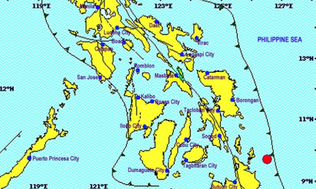 The Philippine Institute of Volcanology and Seismology said the quake struck 43 kilometers southeast of General Luna at 2:50 p.m.