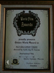 (Eagle News) — The Philippines’ entry from INCinema, “Walang Take Two” has won two major awards from the World Film Awards in Jakarta, Indonesia on Monday night, May 30, during awarding ceremonies that recognized the independent film that had recently gained acclaim from other film festivals in London and Madrid.