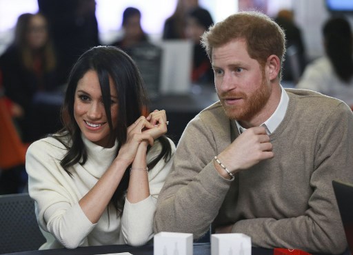 Prince Harry and Meghan Markle visited Birmingham to learn more about the work of two projects which support young people from the local community. The event at Millennium Point aims to inspire the next generation of young women to pursue careers in Science, Technology, Engineering and Maths (STEM). / AFP PHOTO