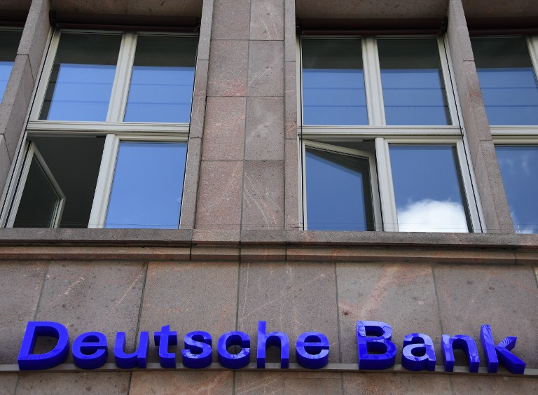 Shares in Deutsche Bank plummeted on the Frankfurt stock market, dragging other European banks and global markets down with it, after reports some customers were pulling money out. / AFP PHOTO / TOBIAS SCHWARZ