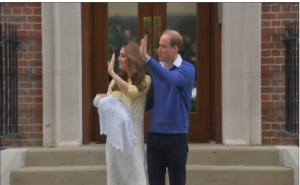 Later in the day, the royal couple stepped out of St Mary’s Hospital in London to greet the crowds and give the world its first glimpse of the new princess, who was wrapped in a blanket asleep in Kate’s arm.