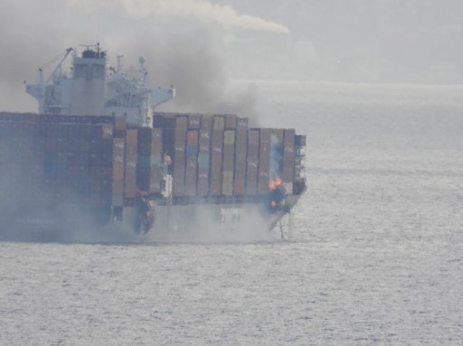 Later, however, the vessel’s manager Danaos Shipping said in a statement that the incident was caused by “excessive listing due to extreme weather,” and indicated the fire was contained.