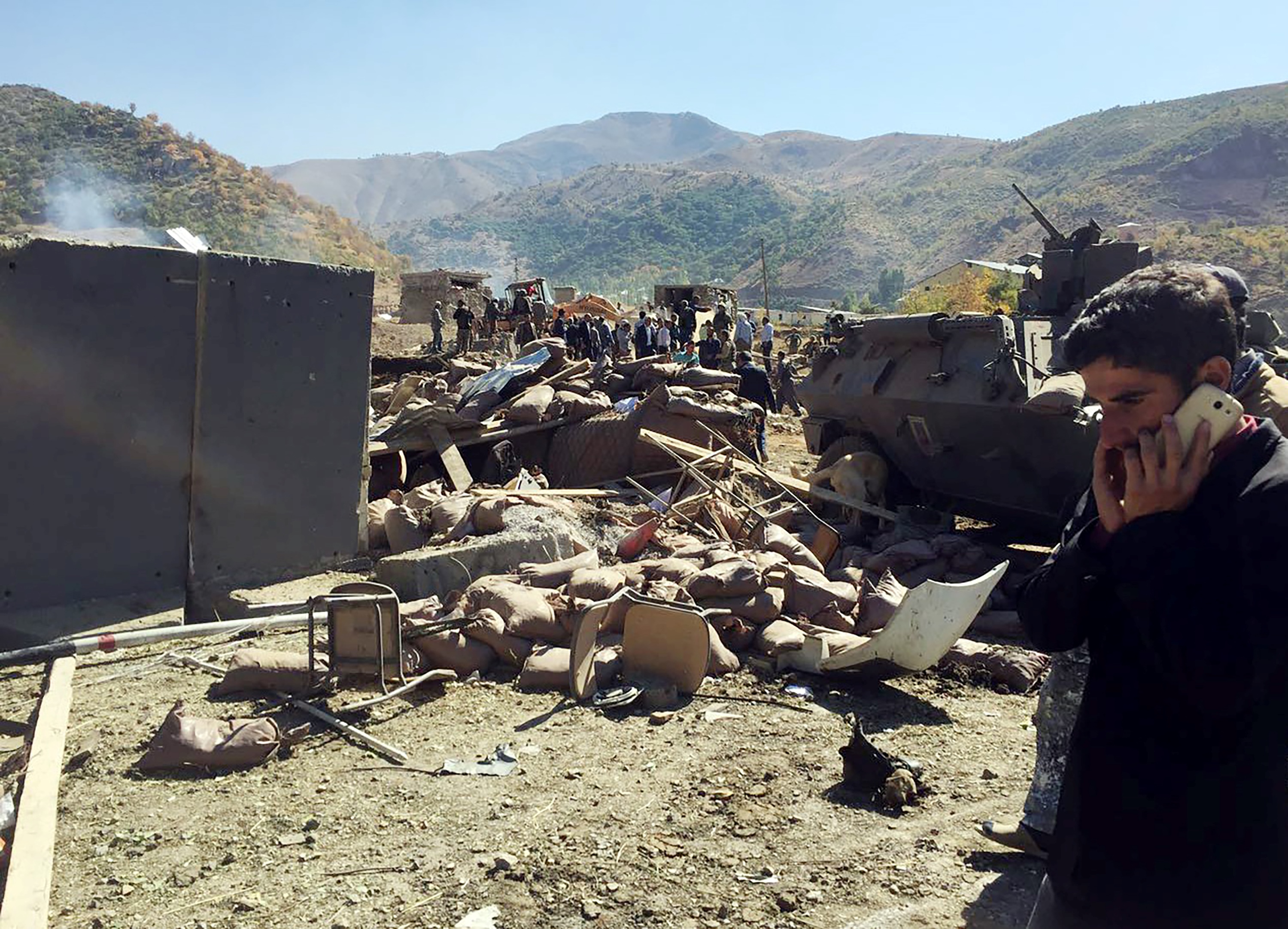 The Anadolu Agency, citing a statement by the Turkish Armed Forces, said the attack outside a Gendarmerie station on the Semdinli-Yuksekova highway was the work of the Kurdistan Workers’ Party, or PKK. / AFP PHOTO /