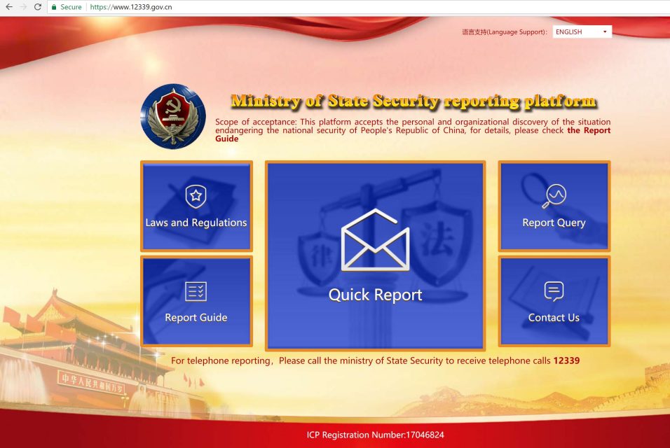BEIJING, China (AFP) — China has stepped up its campaign against foreign espionage with a website in Mandarin and English encouraging people to report national security threats such as bids to “overthrow the socialist system”.