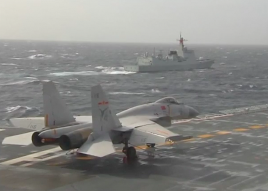 The formation is made up of the aircraft carrier and destroyers Jinan and Yinchuan, frigate Yantai, and a squadron of J-15 fighter jets and helicopters.