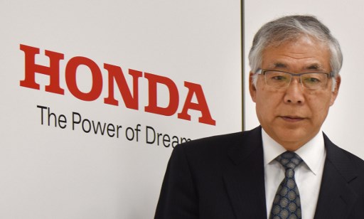 Honda Motor said on May 13 that its full-year net profit dropped by a third, pressured by the exploding airbag crisis at key supplier Takata. / AFP / Tory Yamanaka/