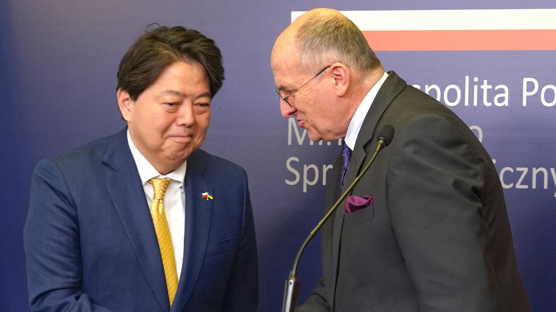 The 20 Ukrainians flew with Hayashi from Poland, where he was on a multi-day trip to offer support for Kyiv as it battles Russia’s invasion.