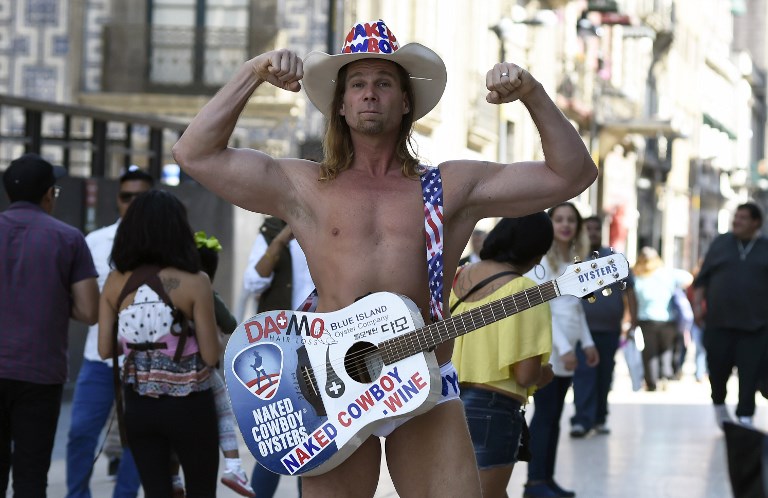 MEXICO CITY, Mexico (AFP) — The Naked Cowboy, whose white underpants, bronzed chest and cowboy hat are fixtures in New York’s Times Square, took his act to Mexico City this week, bravely singing of his love for Donald Trump and his border wall.
