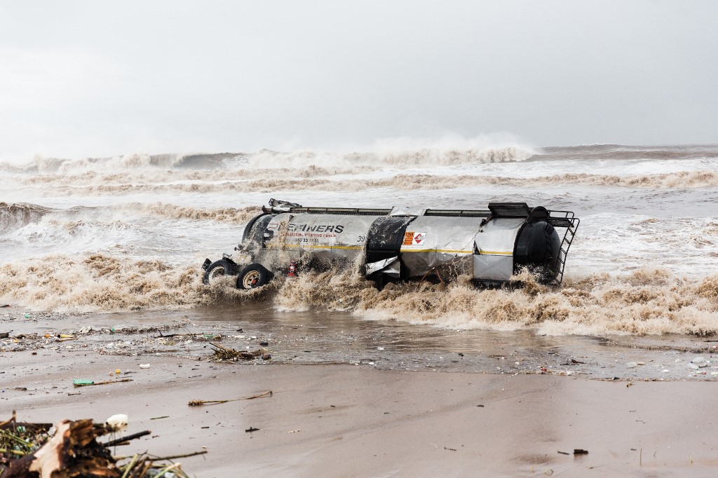 “At around 3:00 am (0100 GMT), I felt the truck shaking and I thought maybe someone bumped it and when I tried to open the curtain I saw the water level… was very high,” said truck driver Mthunzi Ngcobo.