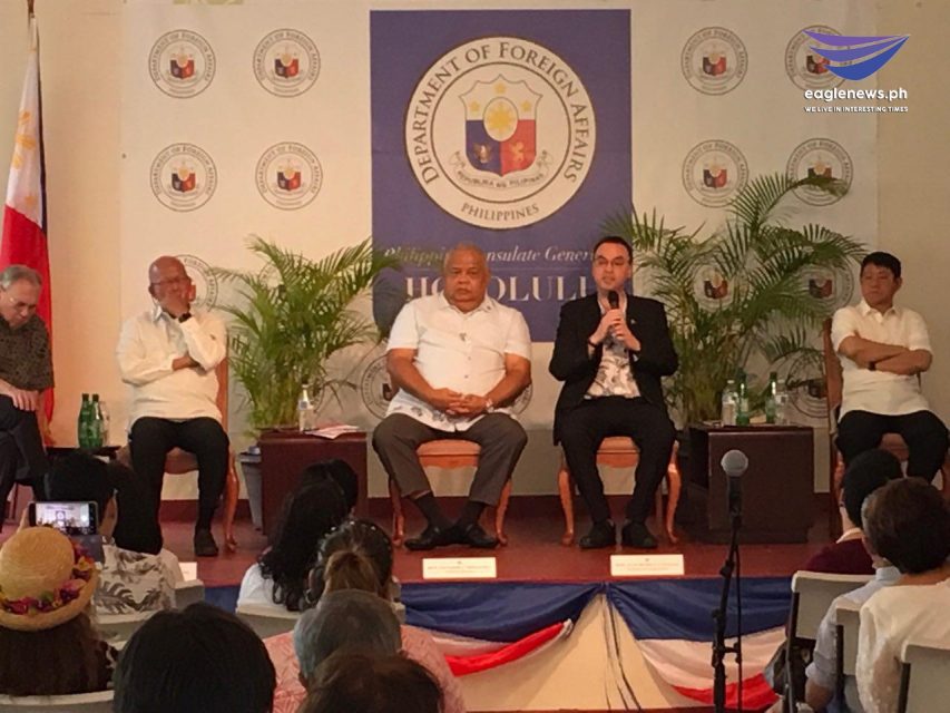 HONULULU (Eagle News) — “Often the president is depicted as a no-nonsense, tough-talking, and shoot-from-the-hip type of guy. But I assure you that this president has his heart in the right place,” said Executive Secretary Salvador Medialdea about President Rodrigo Duterte, as he provided several assuring remarks like this one before an audience of both Filipinos and non-Filipinos during a Town Hall Meeting held at the Philippine Consulate General in Honolulu, Hawai‘i on May 19, 2018.