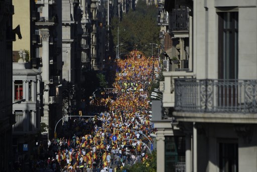 BARCELONA, Spain (AFP) – Protesters flocked to Barcelona on Sunday wrapped in Spanish flags to rally against plans by separatist leaders to declare Catalonia independent following a banned secession referendum.