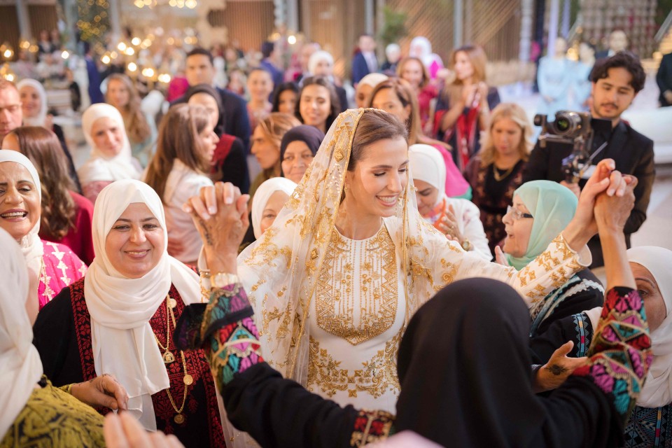 The Royal Hashemite Court published a YouTube video of Prince Hussein’s mother Queen Rania and his sisters, Princesses Salma and Iman, singing and dancing with guests at the party.