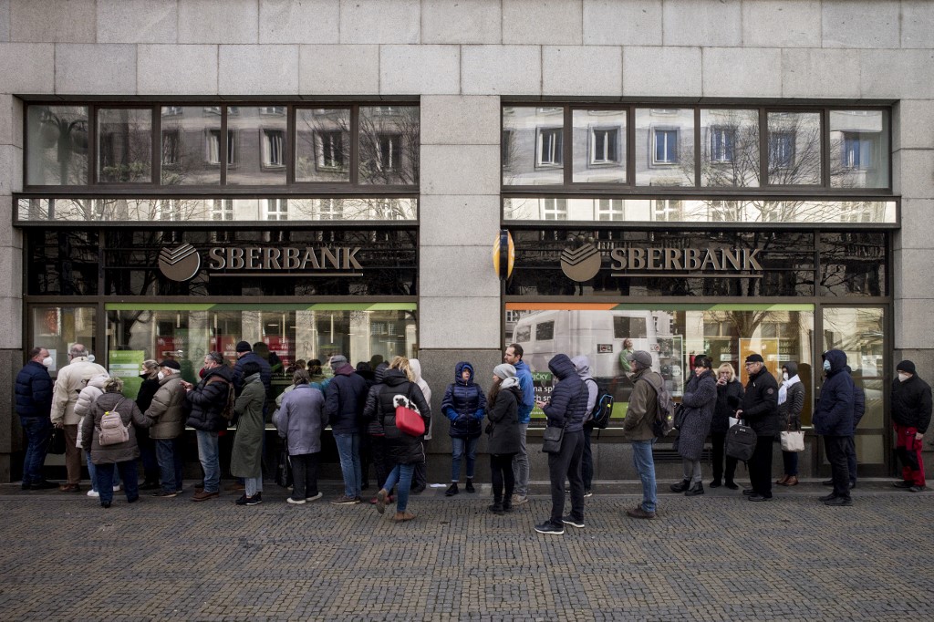 Retired soldier Edward Sysoyev, 51, fidgeted impatiently while in line at a bank in Moscow.