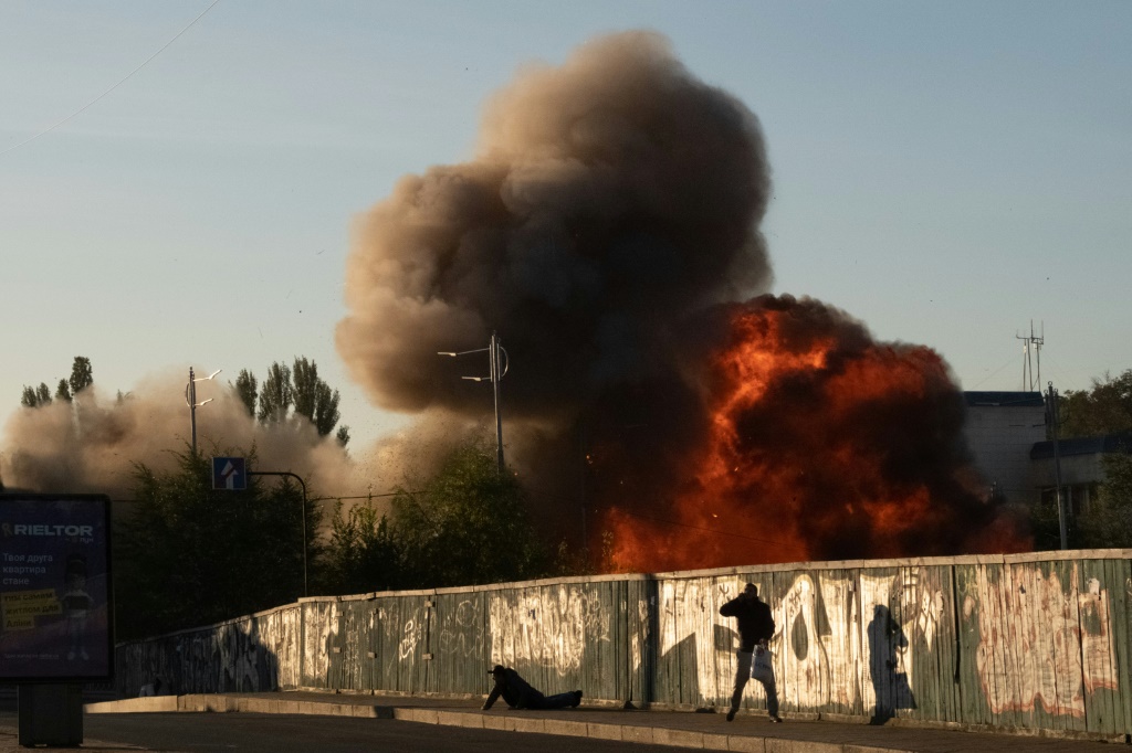 Photos captured by an AFP photographer showed the drones swooping low across the skies of Kyiv as police officers fired at them from the ground. Other images showed smoke rising from explosions across the city.