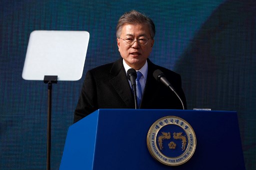 South Korean President Moon Jae-in on March 1 said Japan cannot declare the issue of its former wartime sex slaves “over”, repeating calls for Tokyo to apologize over the issue and confront wrongdoings. / AFP PHOTO