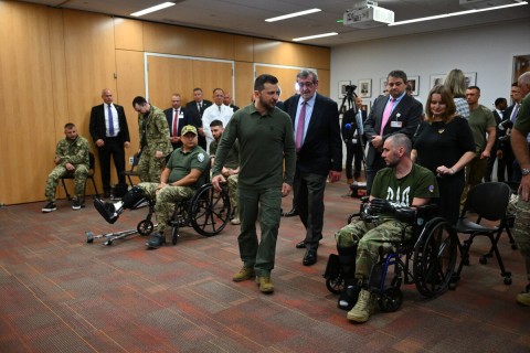 As he looked at the missing limbs and grief-stricken faces of wounded Ukrainian soldiers being treated in a US hospital, President Volodymyr Zelensky had one word for Russian leaders heading to a key UN summit: “terrorists.”