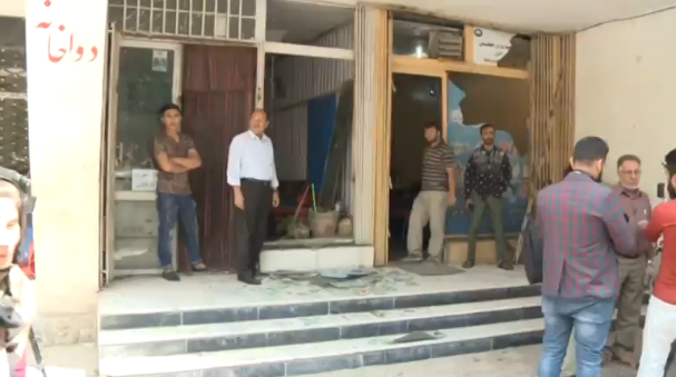 Across the street from the bank where the explosion went off, some shops got damaged by the impact, with shattered glasses littering on the ground.
