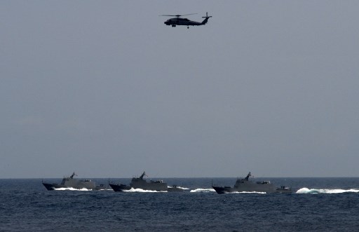 Taiwan’s president watched naval drills simulating an attack on the island on April 13, days before Beijing is set to hold live-fire exercises nearby in a show of force. /AFP/