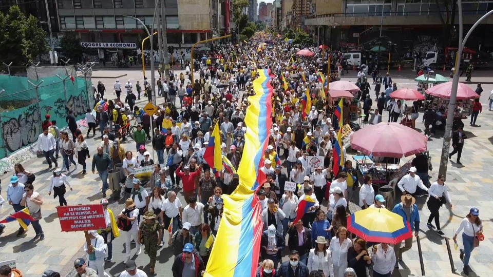 Called by the right-wing opposition under the banner “march of the majority,” protesters gathered Tuesday in cities including Bogota, Medellin, Cali and Barranquilla.