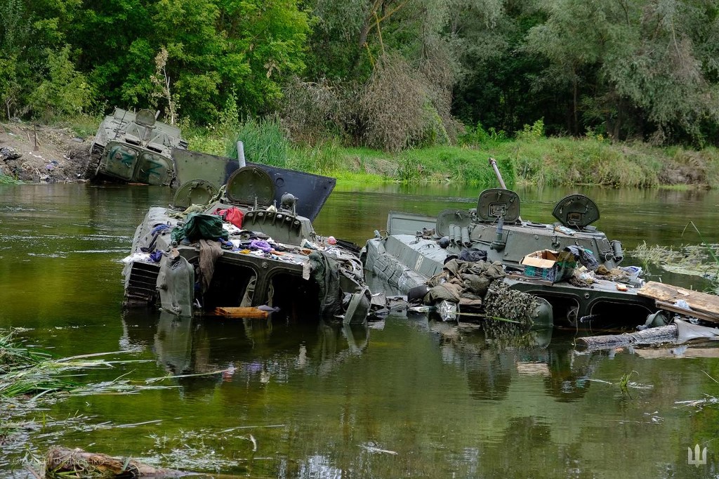 Images posted by the Ukrainian military showed crates of munitions and military hardware scattered across territory abandoned by Russian forces.