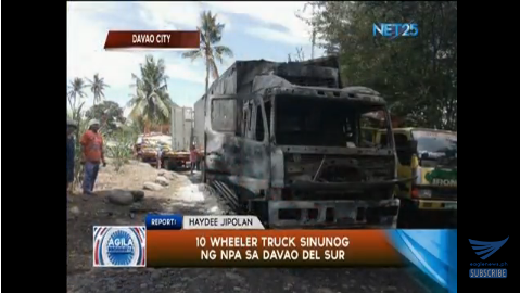 Davao del Sur (Eagle News) — Sinunog ng pinaghihinalaang New Peoples’ Army (NPA) noong Martes ang isang 10-wheeler wing van truck sa Barangay Cabligan, Matanao Davao del Sur.