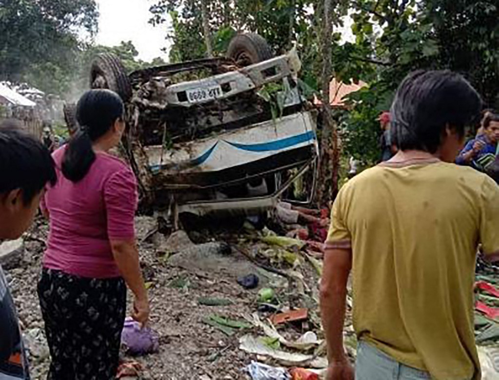 The vehicle was travelling to a beachside resort in Balingasag, Misamis Oriental on Mindanao island for a postponed holiday party on Wednesday when the driver lost control after the brakes apparently failed on a downhill section of road.