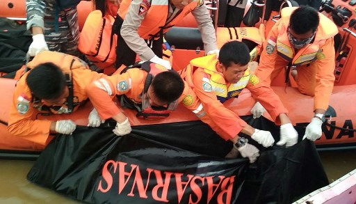 At least 13 people died after a passenger boat capsized off the Indonesian island of Sumatra, two days after another ferry accident in the archipelago killed at least nine, police said on January 5. / AFP PHOTO / NATIONAL SEARCH AND RESCUE AGENCY / Handout /