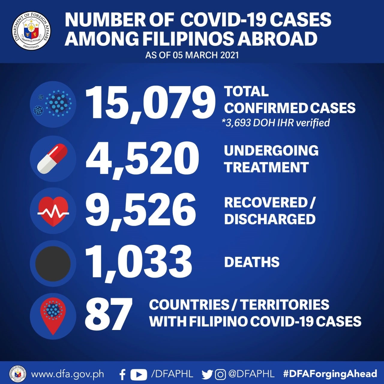 No additional deaths were reported, which means the COVID-19 death toll among overseas Filipinos remains at 1033.