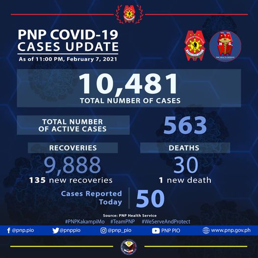 Fifty additional cases pushed the PNP COVID-19 cases to 10481.