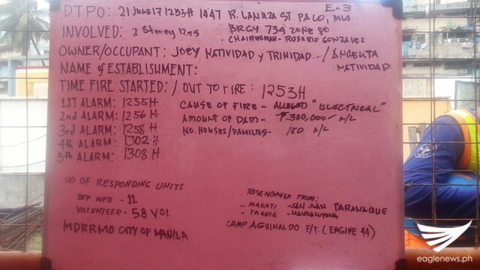 MANILA, Philippines (Eagle News) — A fire razed a residential area in Paco, Manila, on Tuesday, leaving more than 150 families homeless.