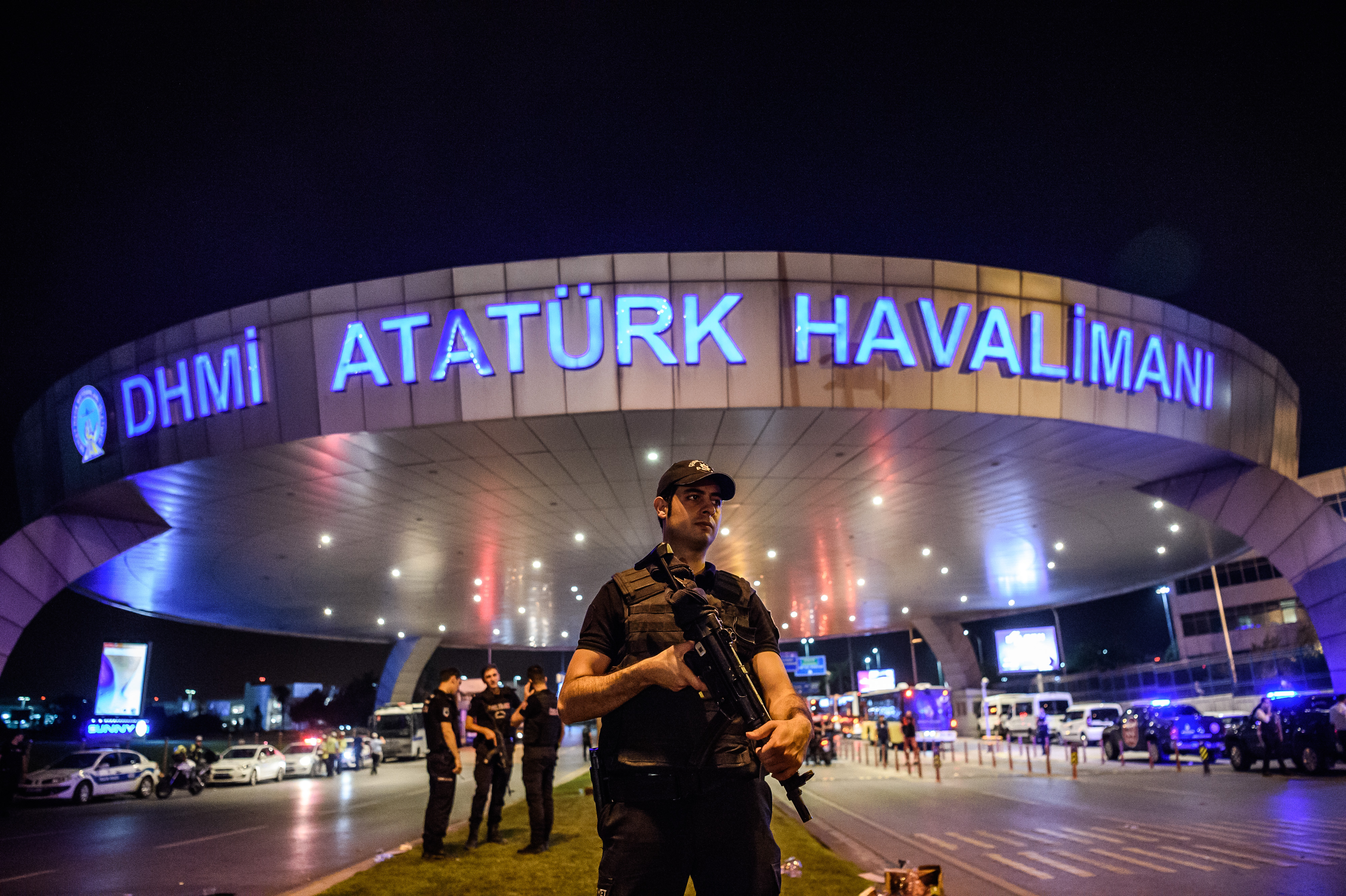 All flights at Istanbul’s Ataturk international airport were suspended on June 28, 2016 after a suicide attack left at least 36 people dead. / AFP PHOTO /
