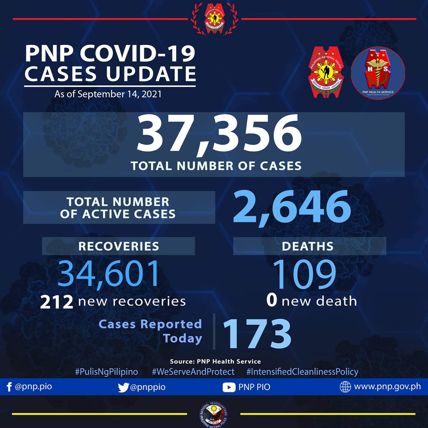 The Philippine National Police said the additional 173 cases pushed the PNP COVID-19 total to 37356.