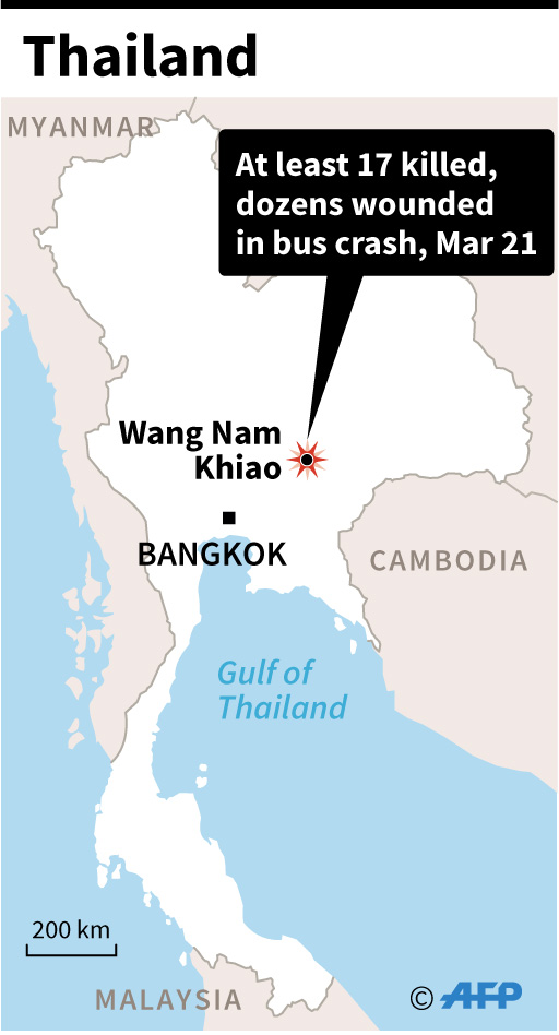 The accident occured Wednesday evening in Thailand’s Nakhon Ratchasima province with the double decker bus carrying around 50 people returning home from a holiday.