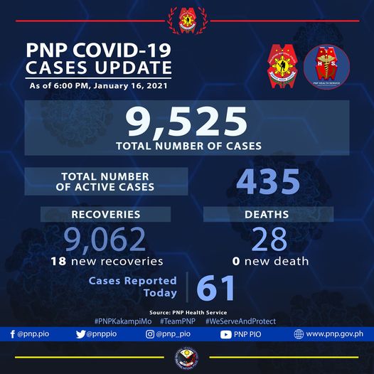 Sixty-one additional cases, however, pushed the PNP COVID-19 total to 9525.