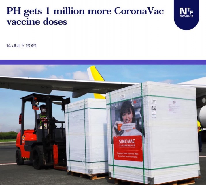 Another 1.5 million Sinovac doses are scheduled for delivery on July 17, according to vaccine czar Secretary Carlito Galvez.