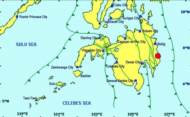 The Philippine Institute of Volcanology and Seismology said the quake hit 16 kilometers southwest of Baganga at 4:13 a.m.