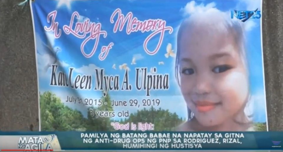 The victim, Kateleen Myka Ulpina, is the daughter of drug suspect Renato Ulpina who allegedly used the girl as a “human shield” during the firefight, according to the police. The suspect’s relatives, however denied this.