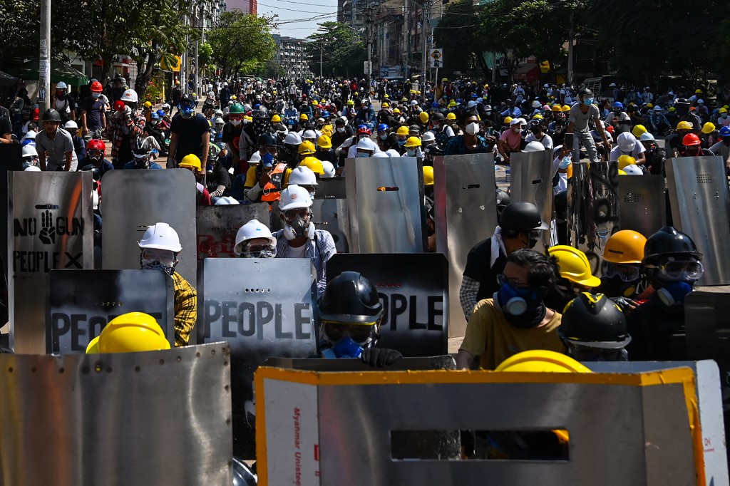“We are deeply concerned about the fate of some 200 peaceful protesters — incl. women — who have been cordoned by security forces in Yangon,” the UN rights office said in a tweet, warning that the cordoned protesters “may be at risk of arrest or ill-treatment.”
