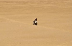 A villager with his bicycle walks on the banks of the Kuakhai River on a hot summer day, on the outskirts of eastern Indian city of Bhubaneswar June 9, 2014. REUTERS/Stringer