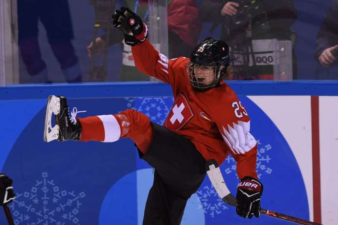 The Swiss, however, did not waste anytime getting on the scoreboard. Swiss forward Alina Muller scored the first goal at 10:23 into the first period and scored again just under three minutes after her first goal. Muller completed the hat trick with her third goal seconds before the first period ended.