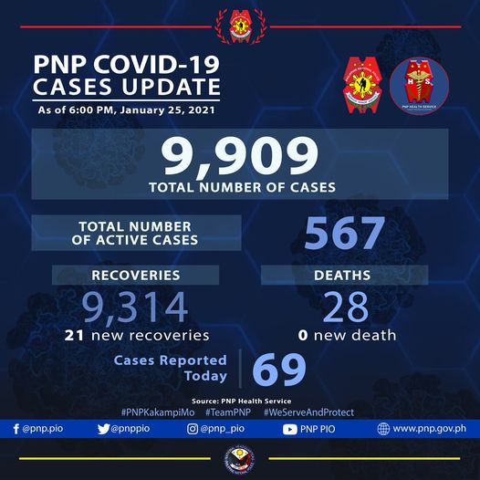 Sixty-nine additional cases, however, pushed the total PNP COVID-19 cases to 9909.