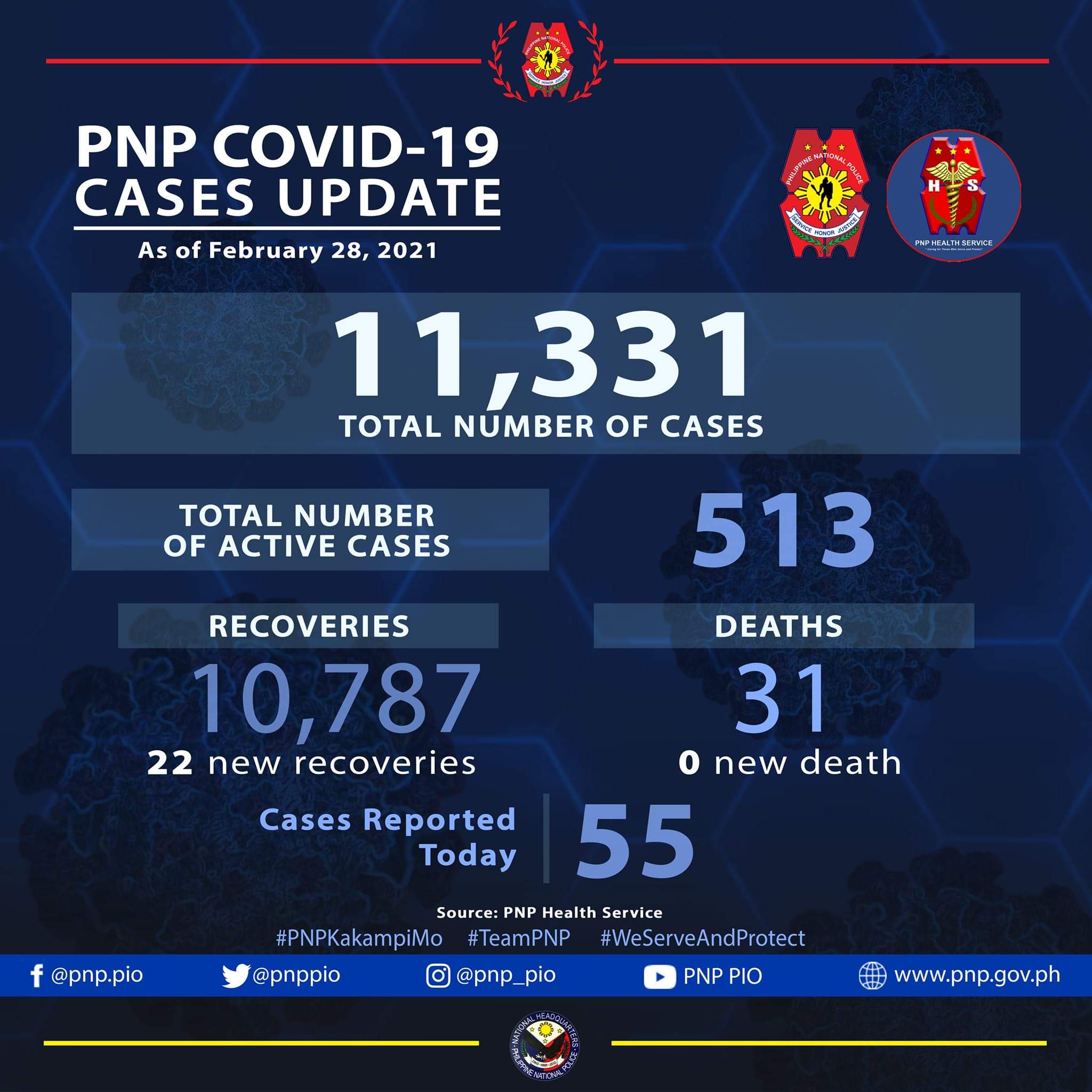 Fifty-five additional cases, however, also pushed the PNP COVID-19 tally to 11331.