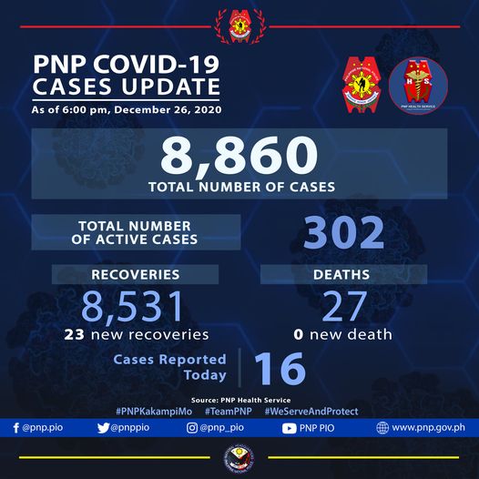 The Philippine National Police said with the additional recoveries, the PNP COVID-19 recovery total rose to 8531.