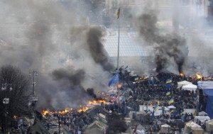 As protesters and police battled, Russia called the escalation a “direct result of connivance by Western politicians and European structures that have shut their eyes … to the aggressive actions of radical forces”.