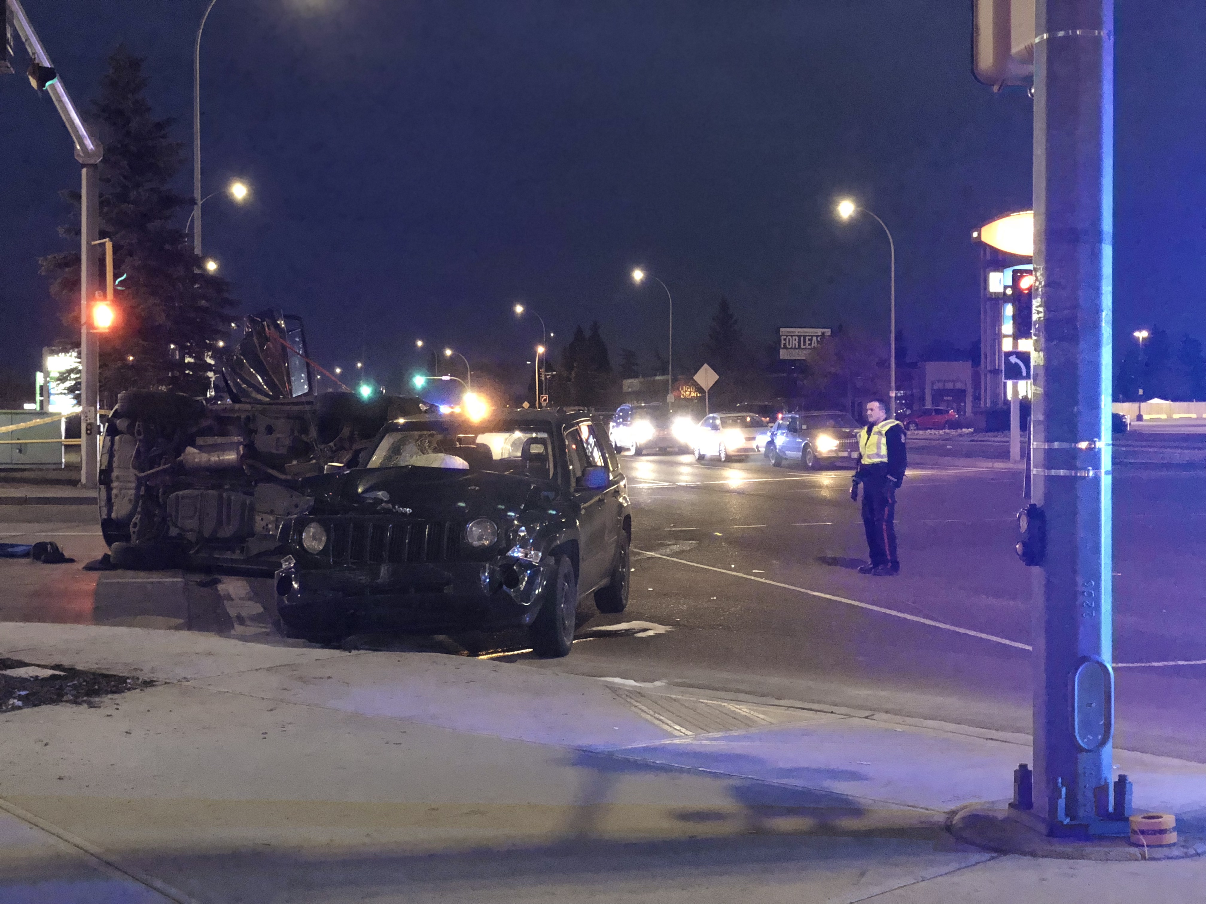 EDMONTON, Alberta (Eagle News) — A car collision on the corner of 94th street and 137th avenue involving two cars has caused roadblocks. According to sources, the collision was caused by cars trying to beat the red light. There were no fatalities and everyone involved has been taken to the hospital.