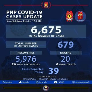 Thirty-nine additional cases pushed the total PNP cases to 6675.