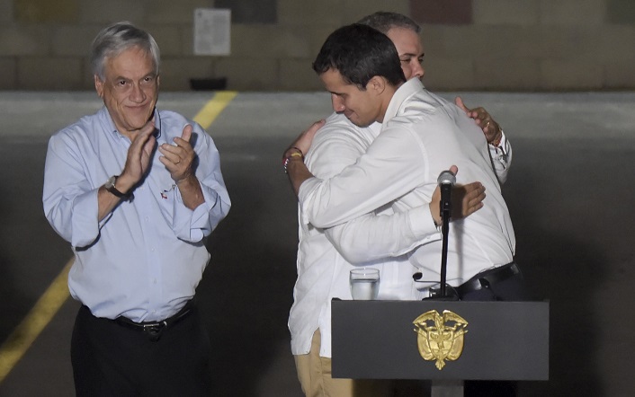 Guaido appeared alongside Colombian President Ivan Duque, Chile’s Sebastian Pinera and Mario Abdo of Paraguay as crowds cheered.