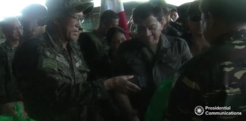 (Eagle News) — President Rodrigo Duterte showed his support for soldiers and policemen battling Islamist-inspired militants in Marawi City when he visited soldiers of the Joint Special Operation Task Force Trident in Camp Kilala during his second visit to Marawi City on August 4, Friday.
