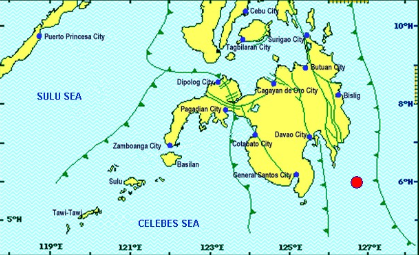 The Philippine Institute of Volcanology and Seismology said the quake, of tectonic origin, hit 106 kilometers southeast of Governor Generoso at 1:38 a.m.